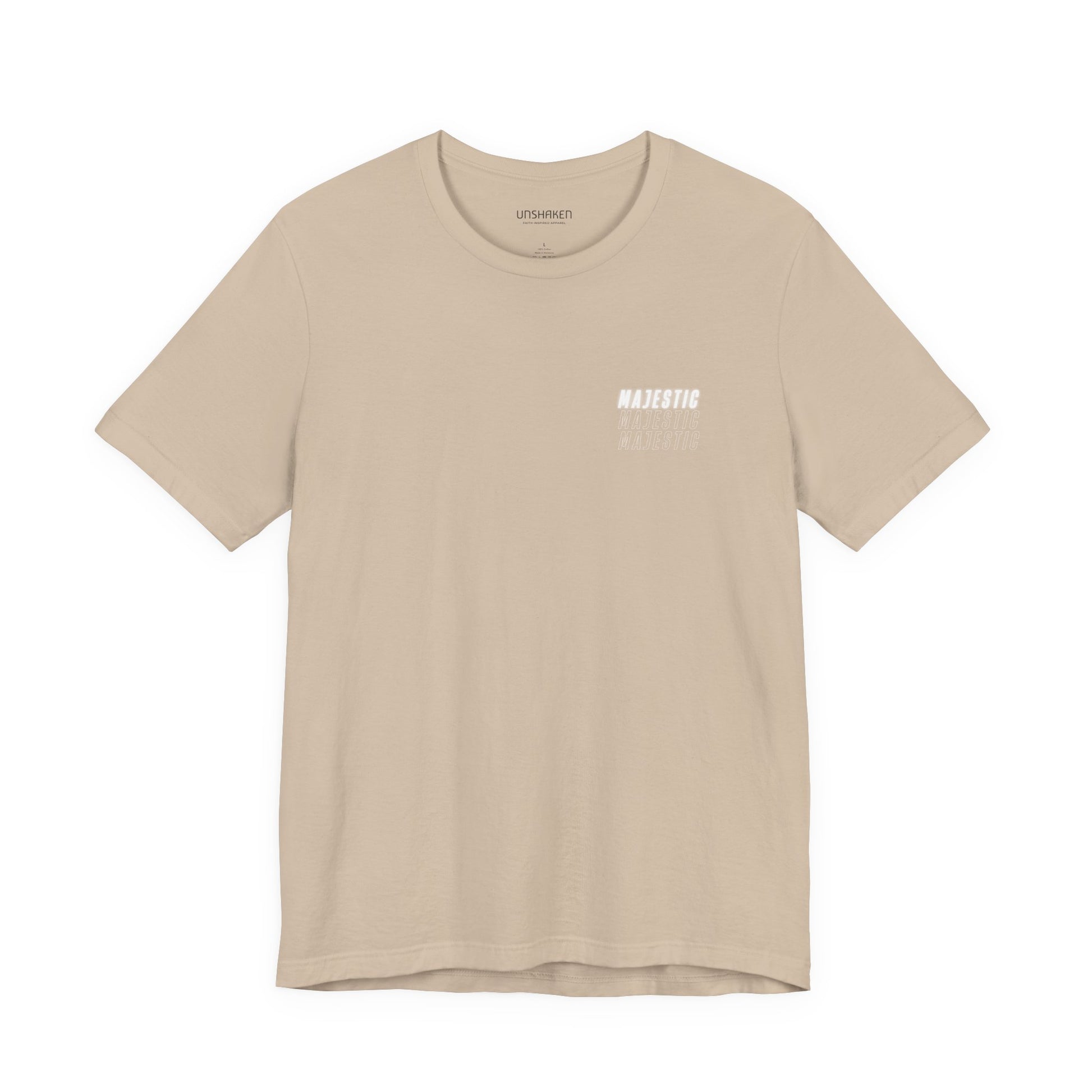 Wear a statement of praise. The Majestic Tee is designed for those who find awe in His creation and strength in His name. Whether you choose the grounded Tan, the clean Light Gray, or the classic Black, this tee serves as a quiet yet powerful reminder of the One who holds it all together.