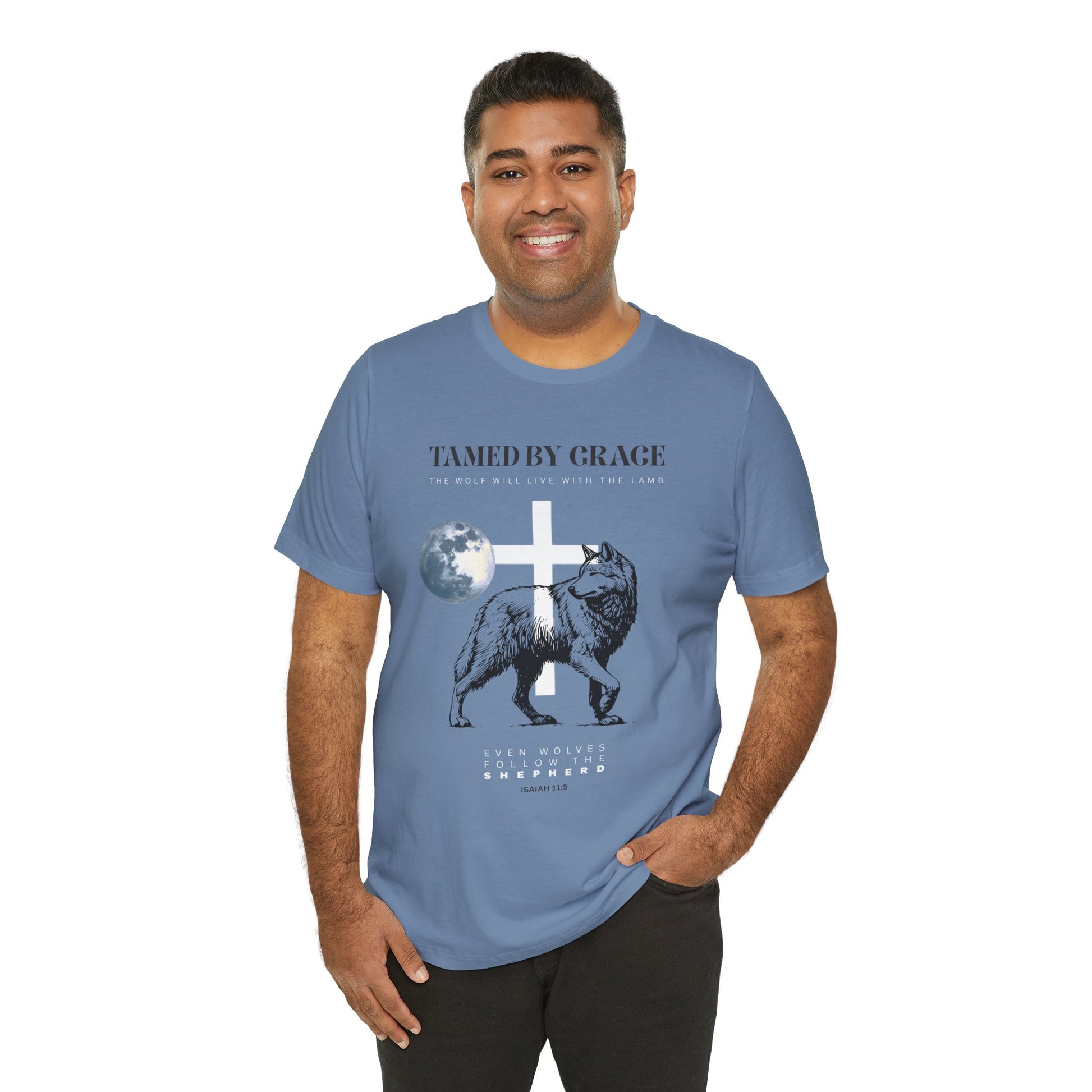 This thought-provoking design is printed on the Bella+Canvas 3001, a tee chosen for its superior comfort and quality. Itβs a wearable reminder that no matter how wild the world (or your heart) may feel, there is a Shepherd whose path is always worth following.