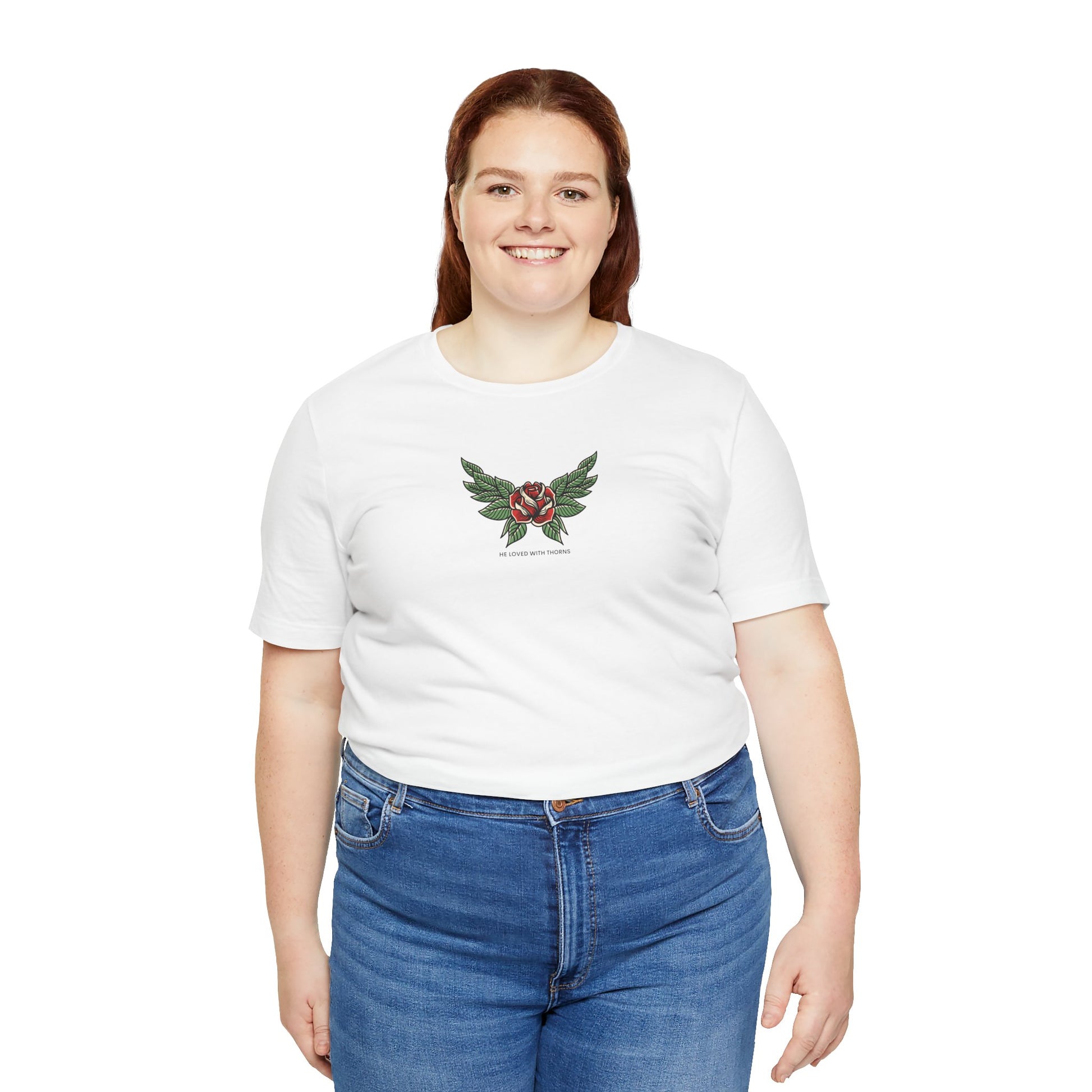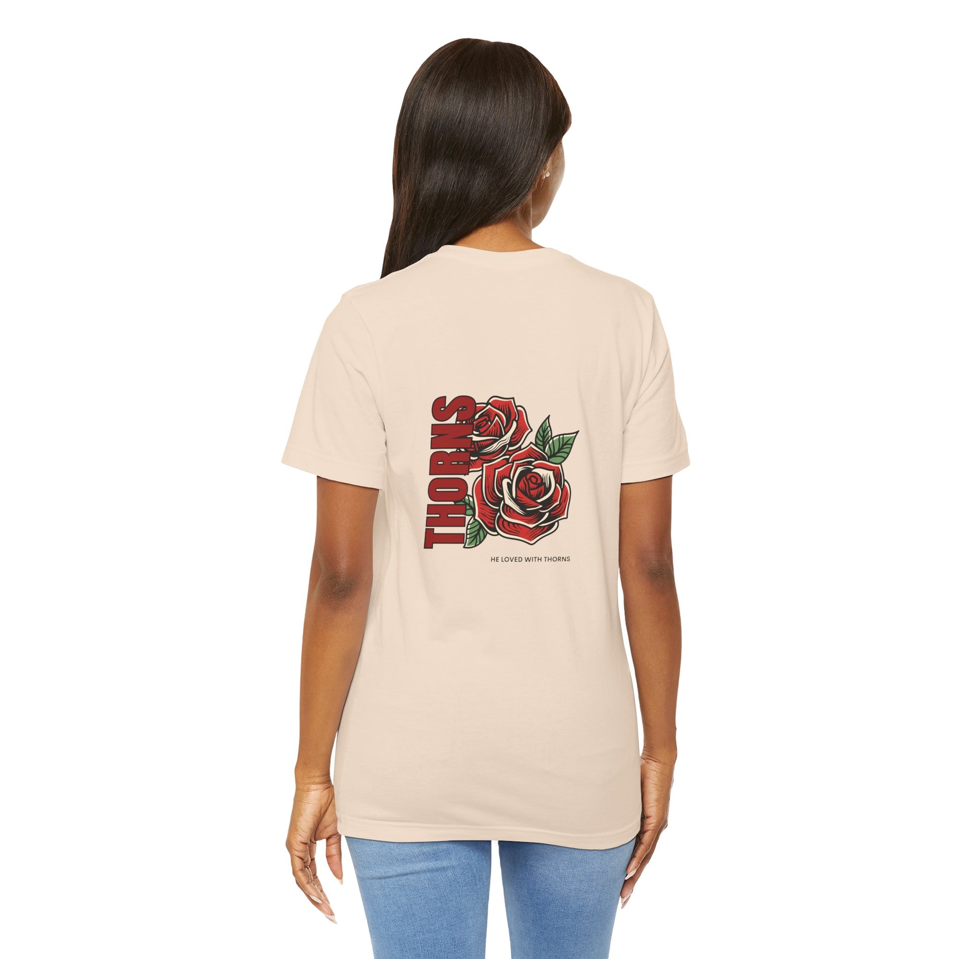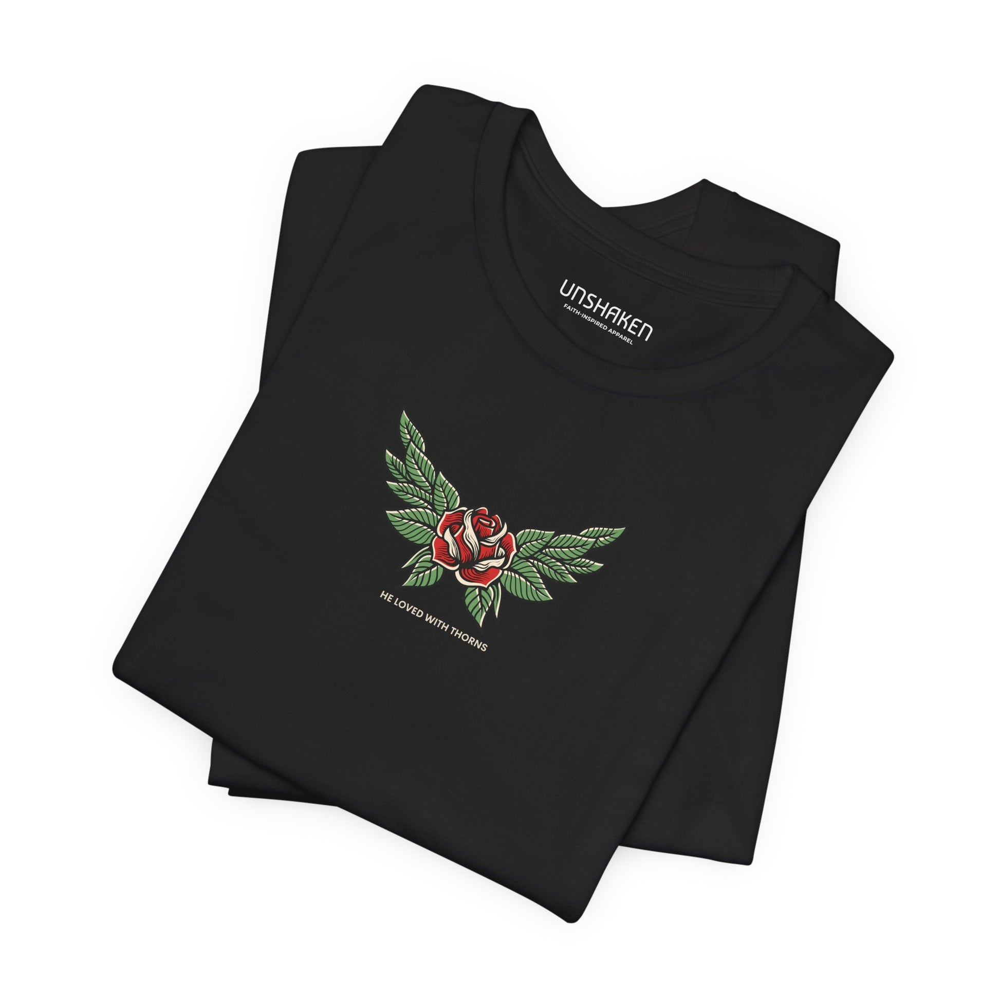 Love is often painted as soft and gentle, but His love was fierce enough to endure the sharpest pain. The Thorns of Love Tee features the powerful phrase "He Loved With Thorns," serving as a stark, beautiful reminder of the sacrifice that bought our freedom.